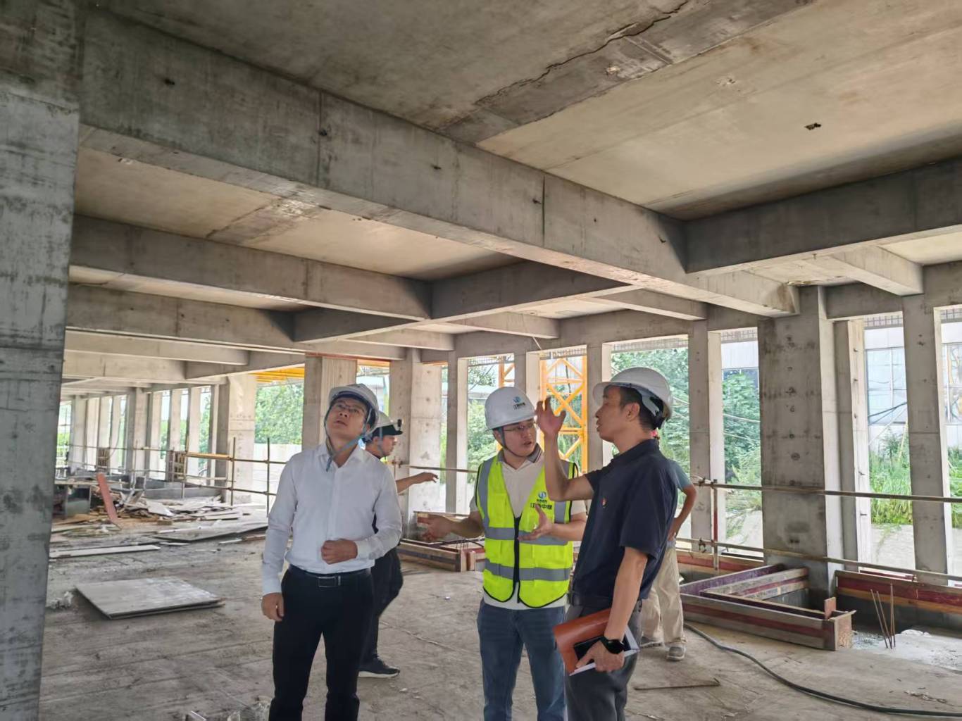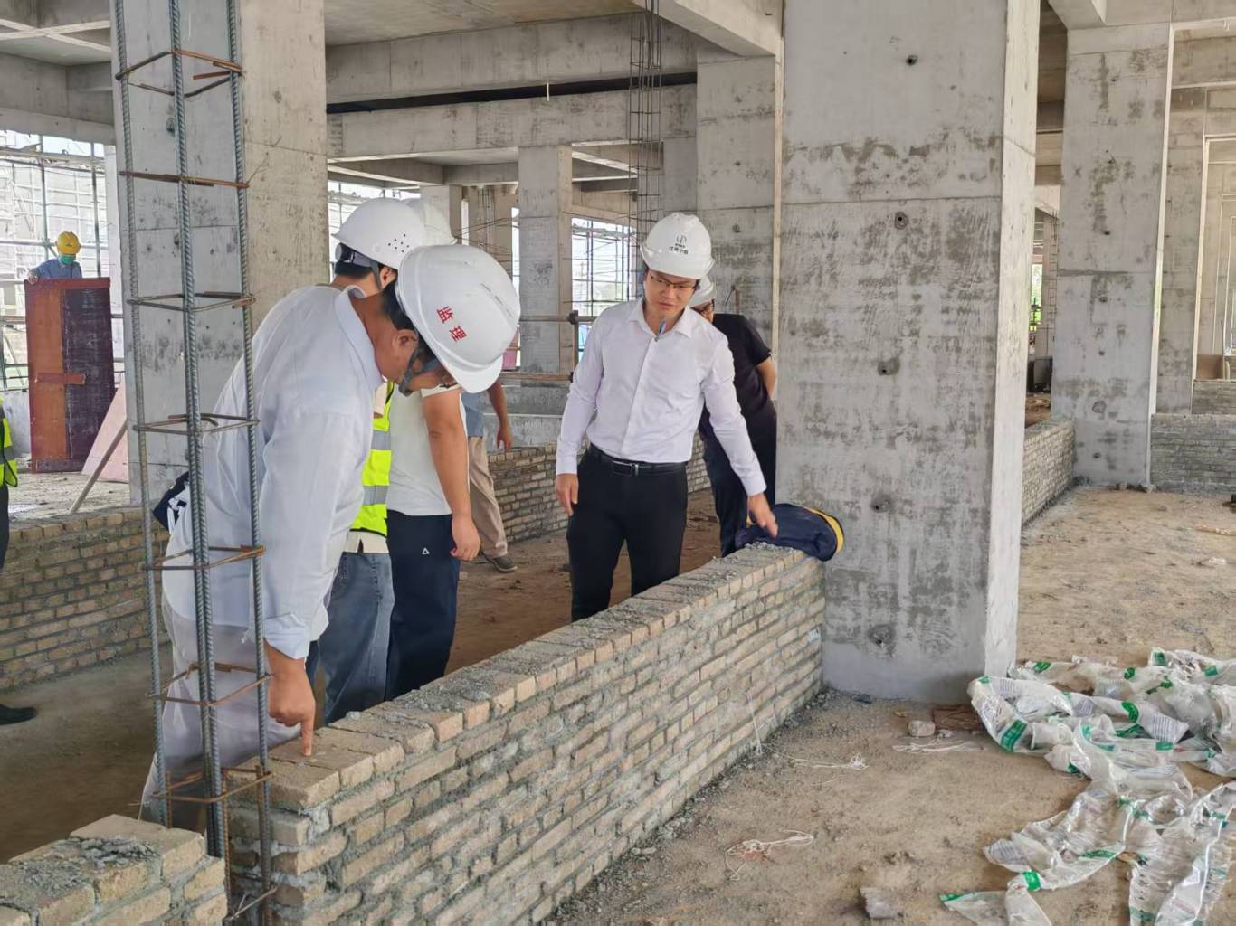 会后,全体人员移步施工现场,开展实地检查。大家重点查看了主体结构的施工质量和工程进度,并就施工难点与技术人员现场交流。新葡萄8883官网AMG处长童立红针对进度管理提出要求:“要严把质量关、安全关、廉洁关,确保项目按期交付,为师生交出满意答卷。”施工单位负责人表示:“将以此次活动为契机,全面落实党建引领要求,打造标杆工程。”