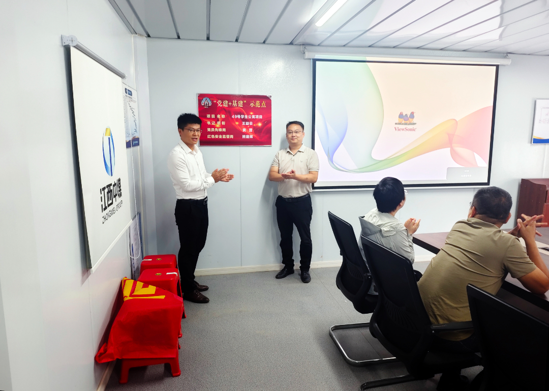 9时30分,支部书记王益云同志宣布仪式开始,并强调要坚持以‘红旗工程’创建为抓手,将党建优势转化为工程推进优势,筑牢安全、质量、廉洁三道防线;通过打造“红旗工程”“‘党建+基建’示范点”, 助推项目建设高质量推进。仪式结束后,全体党员在工地现场面向党旗庄严宣誓,重温入党誓词。